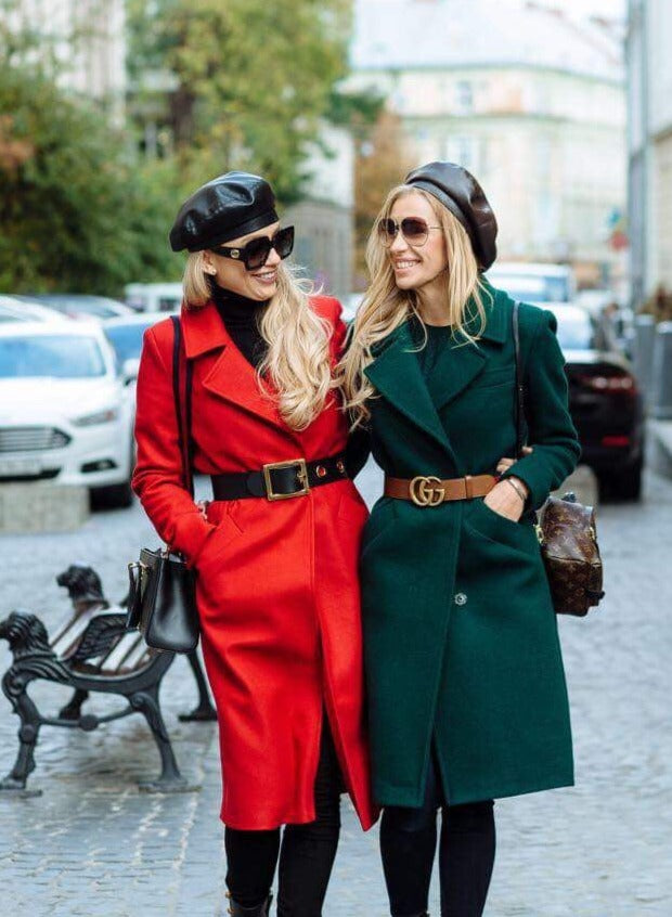 Classic Emerald Wool/Cotton Blend Coat with belt