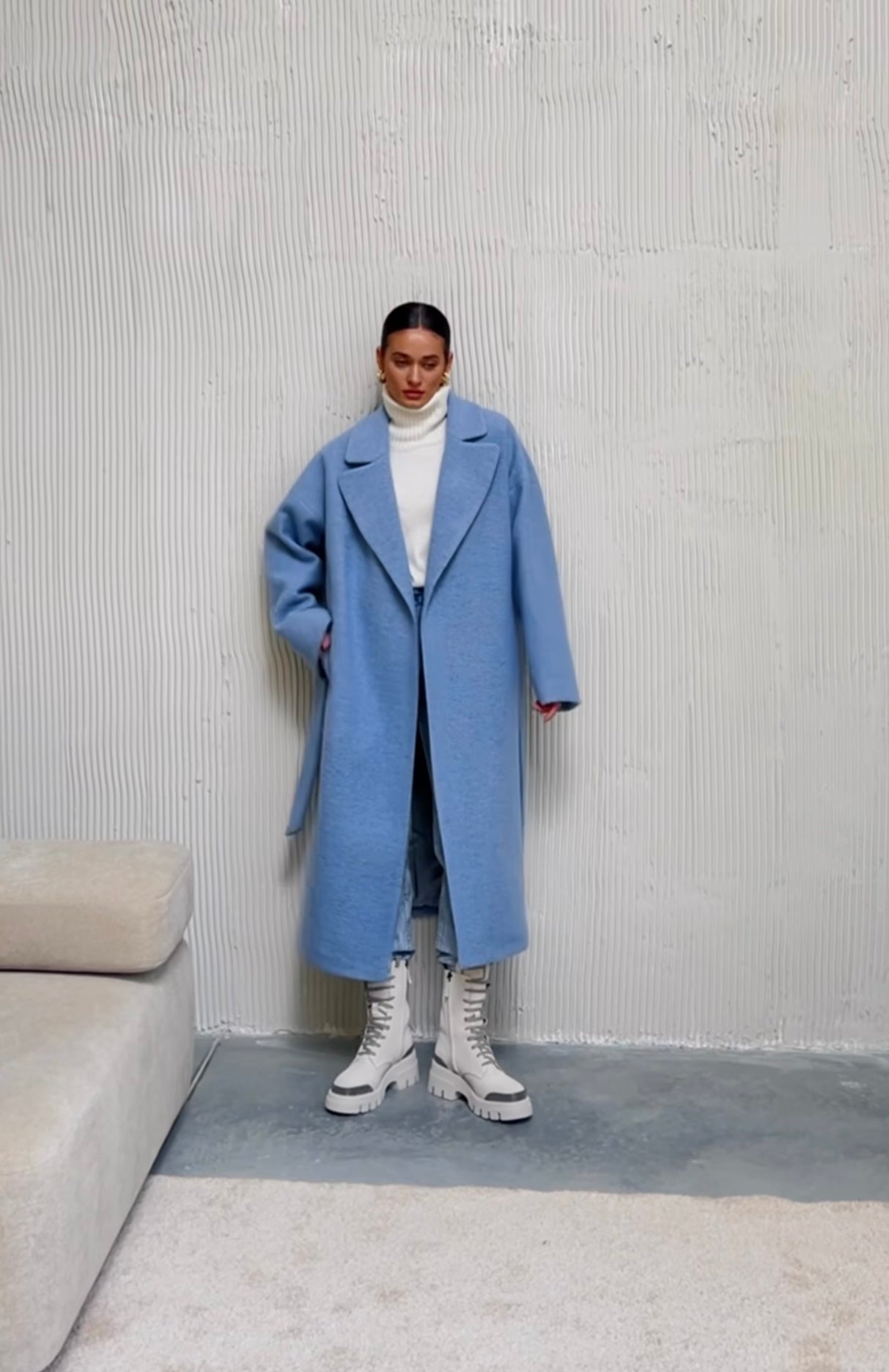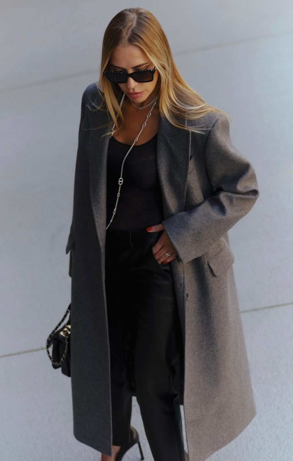 Classic Gray Cashmere/Wool Blend Coat with belt