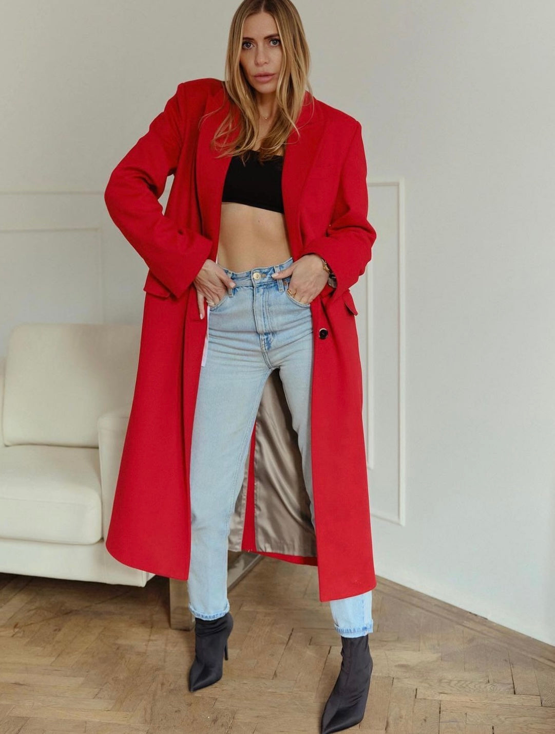 Classic Burgundy Wool/Cotton Blend Coat with belt