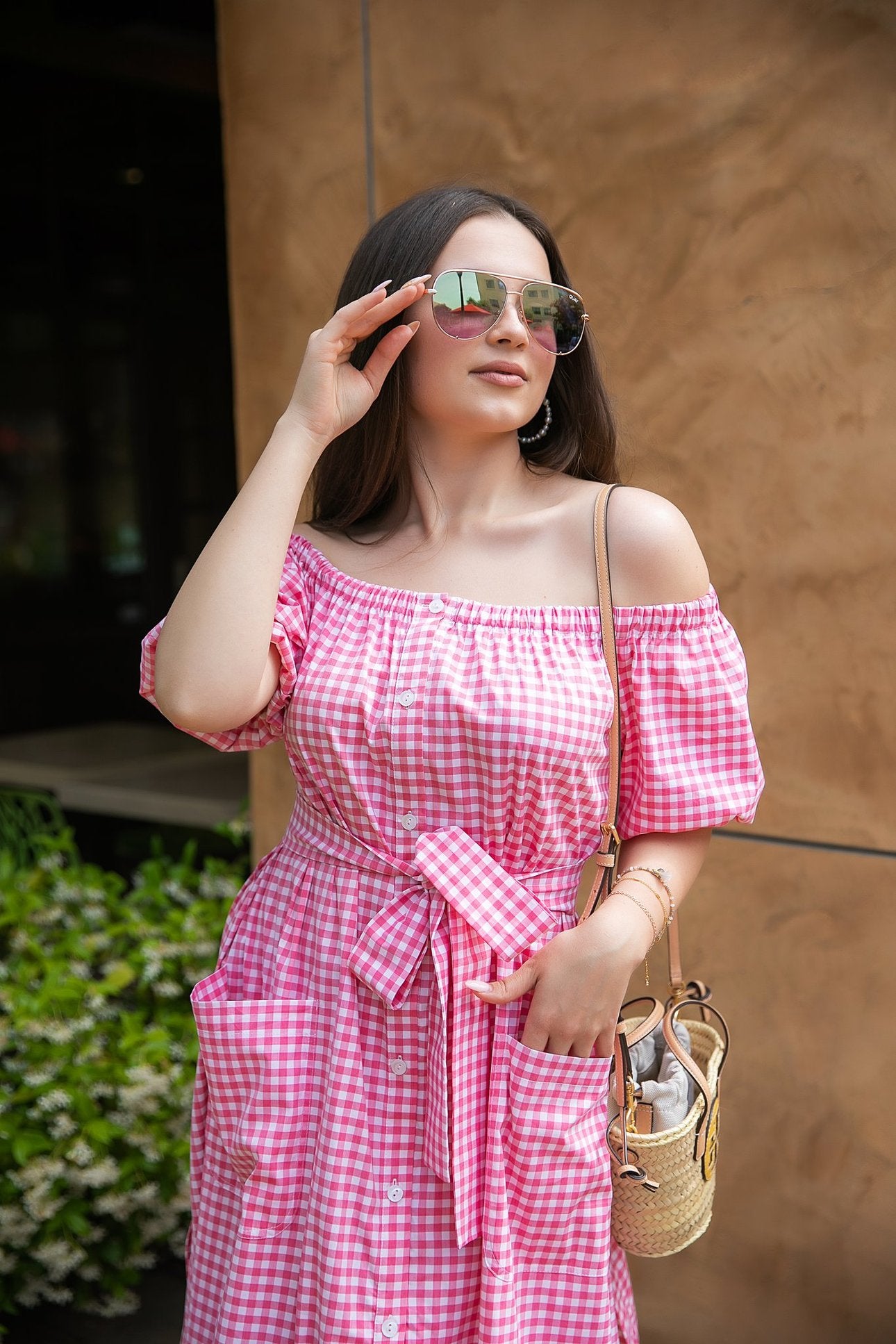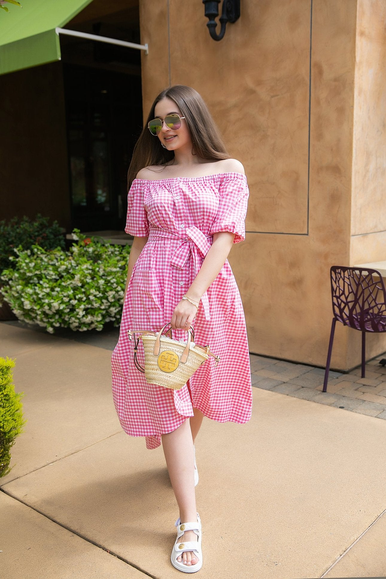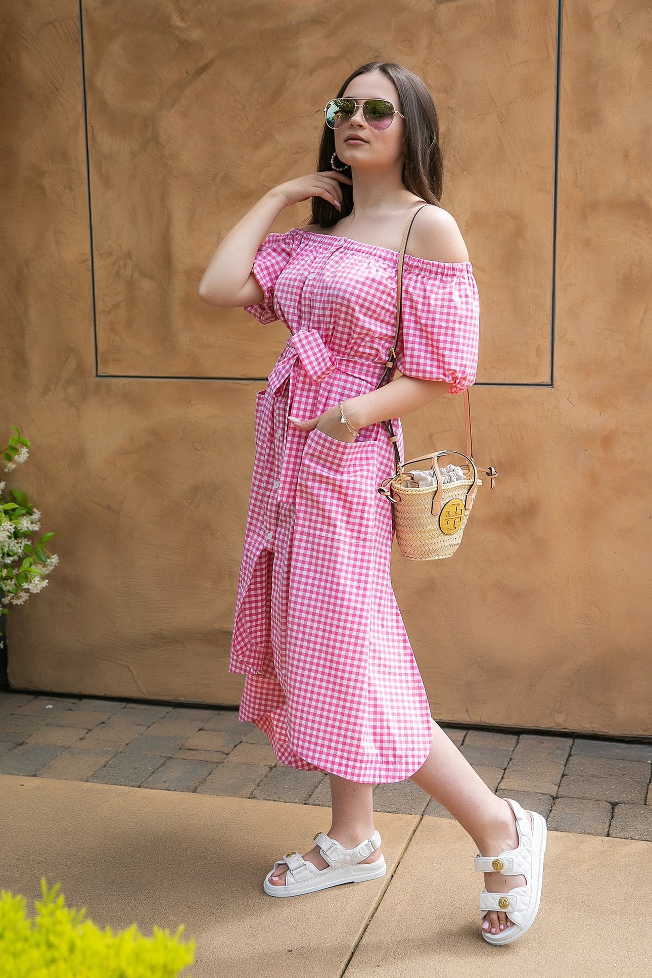 Lightweight cotton fabric, shapes this spectacular dress that has an off-the-shoulder neckline and a relaxed waist belted area. All are framed by long balloon sleeves. A high-fitted waist top and a cascading maxi skirt with a front slit give this gown a little bit of a flirty feel.
