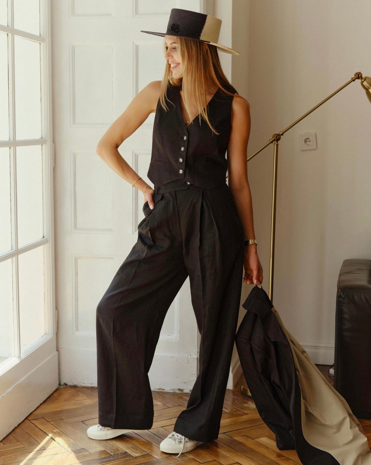 A must-have vest in our essential linen, to wear layered over a tee or solo in the heat of summer. Cleverly combining a classically tailored look with a built-for-comfort fit. V-neckline when buttoned.