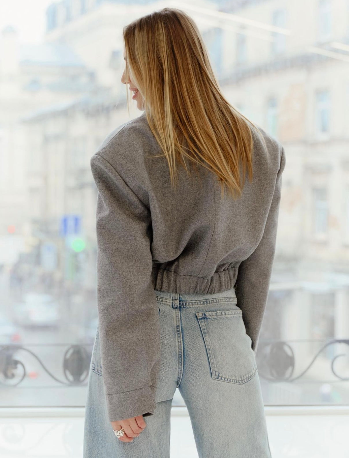 This wool bomber jacket - a captivating fusion of timeless charm and contemporary style. Meticulously crafted, this jacket boasts wool body that guarantees warmth and comfort.