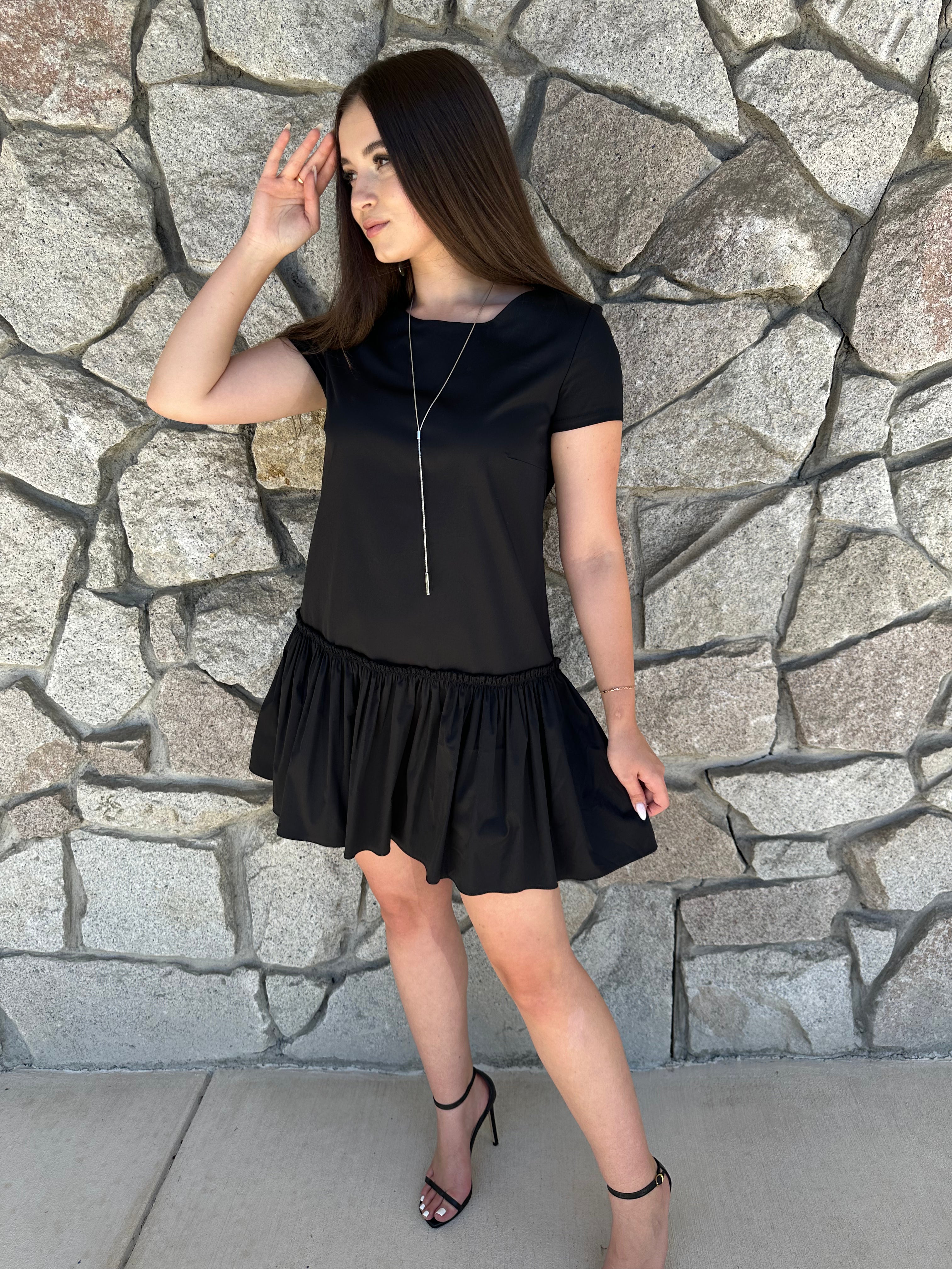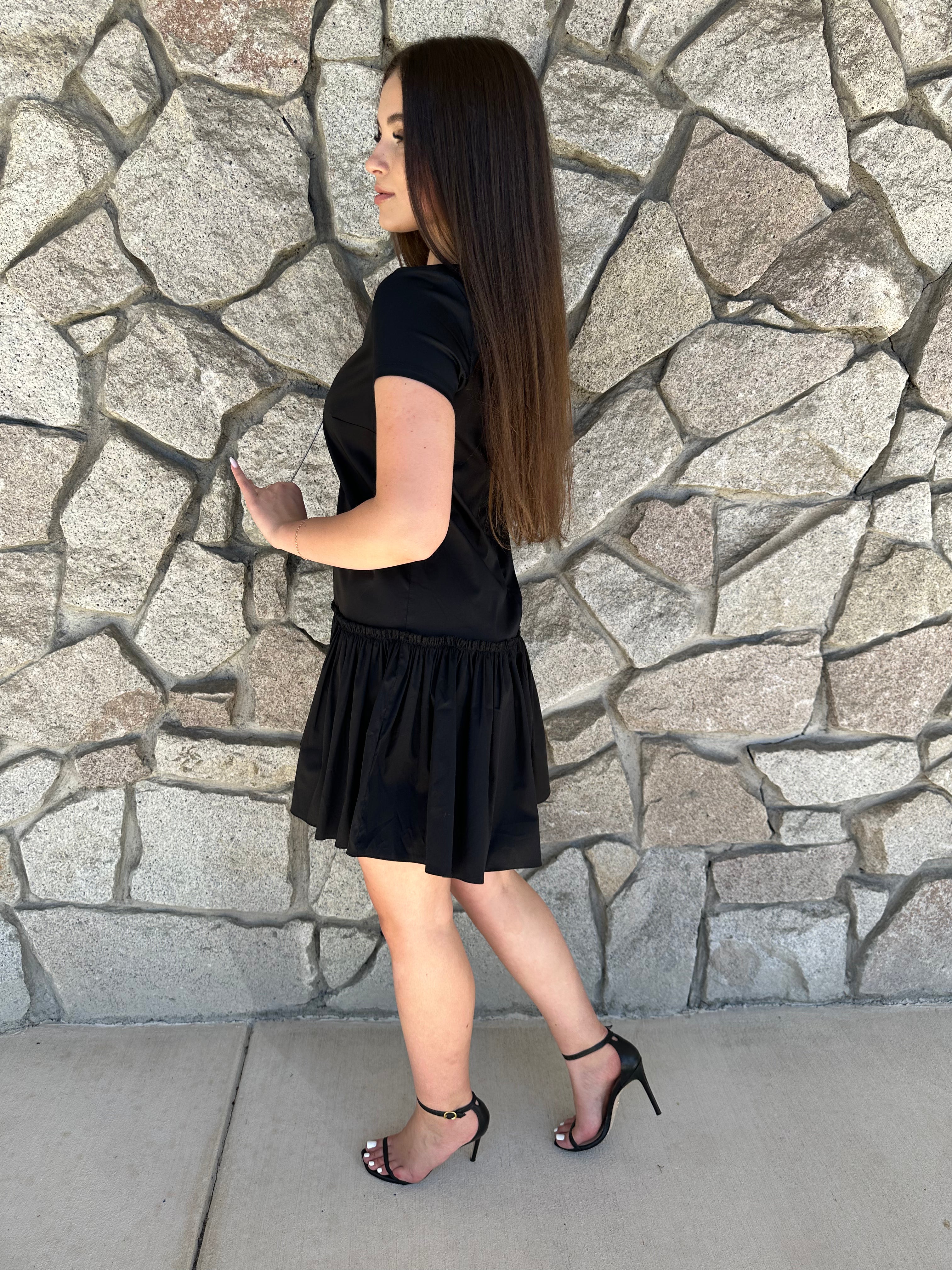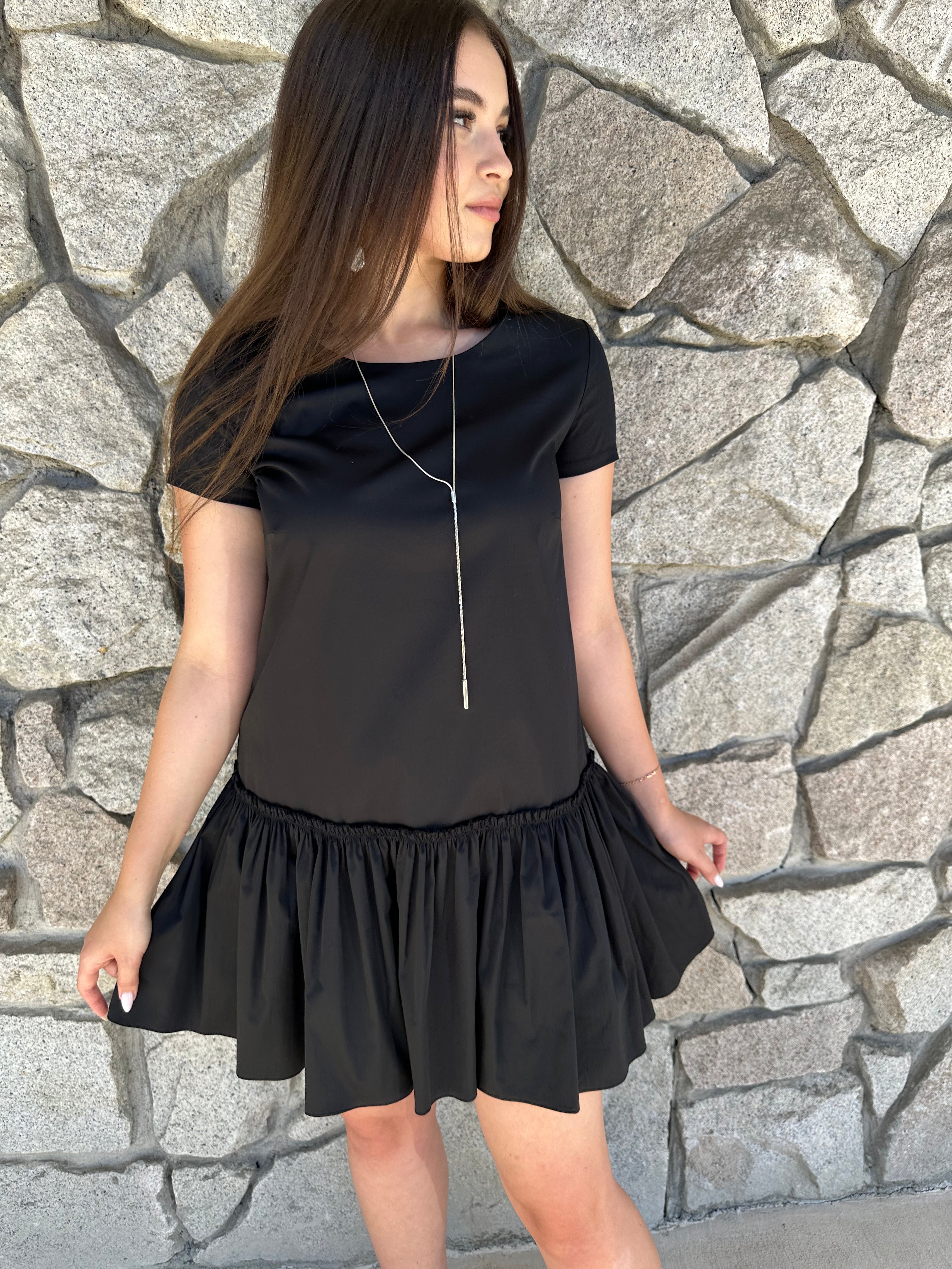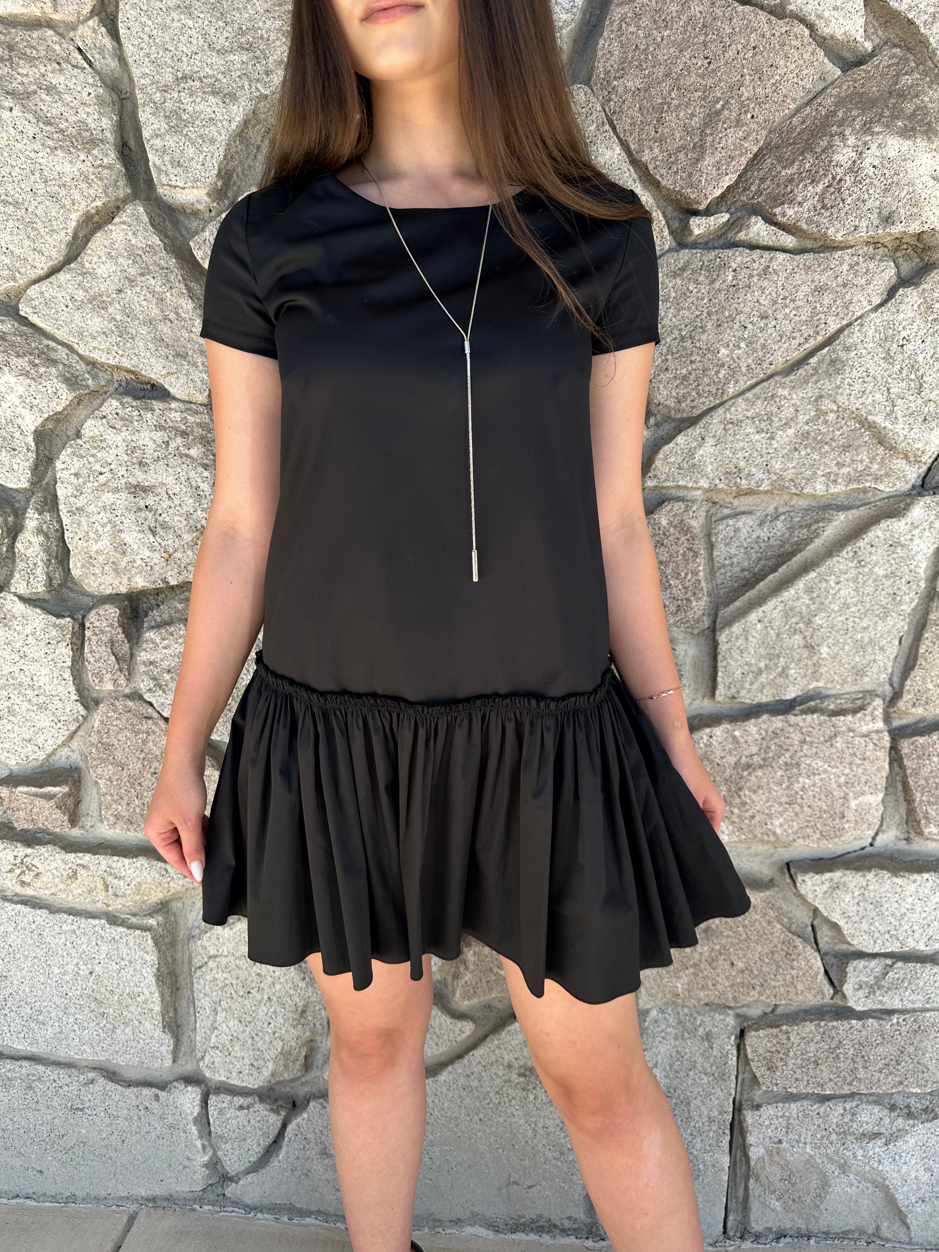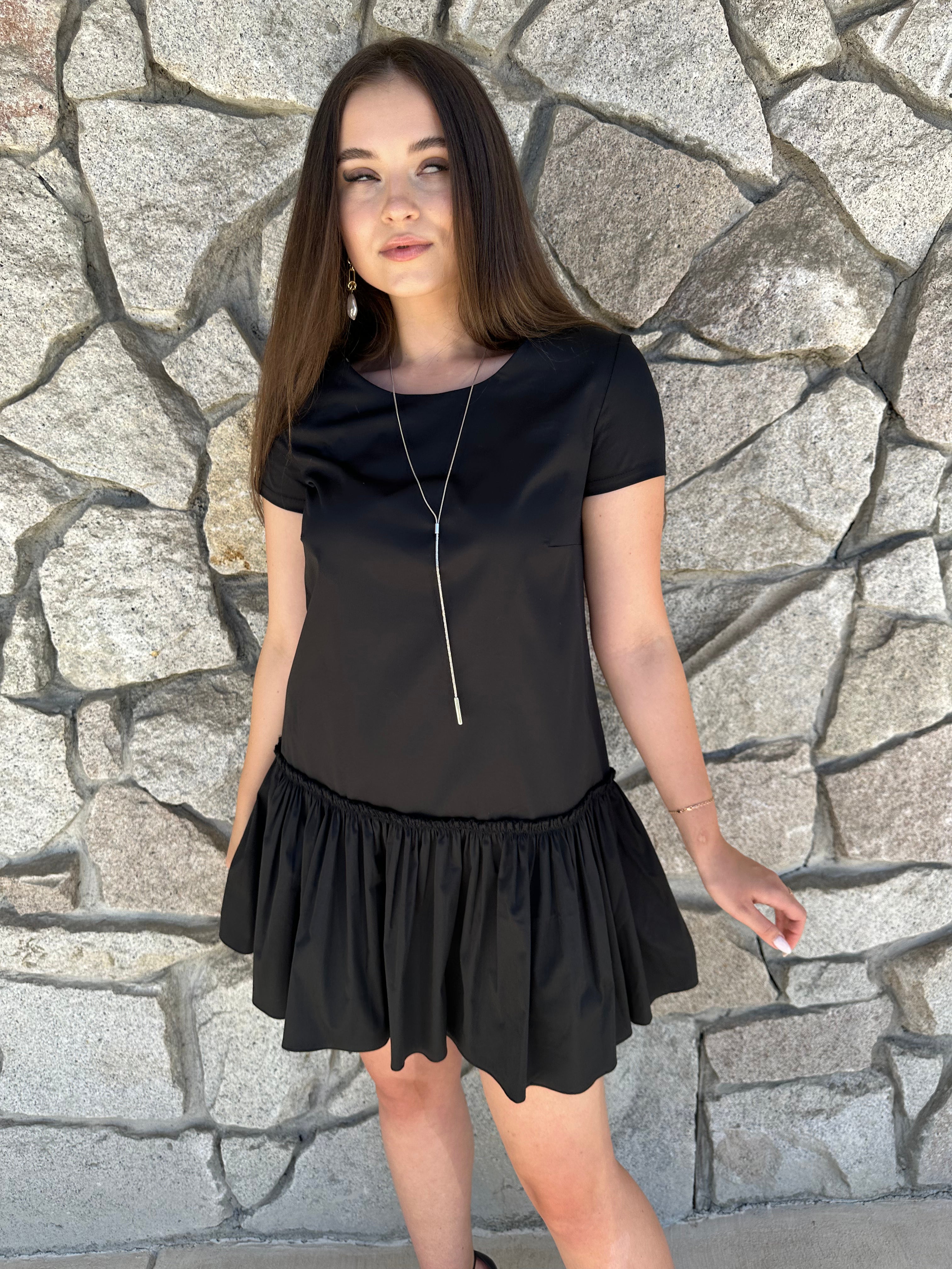 Cropped dress in pure cotton. A-line design with round neck, pockets at the sides and opening with zipper and zip pull on the back. Fresh and comfy, ideal for warmer days.