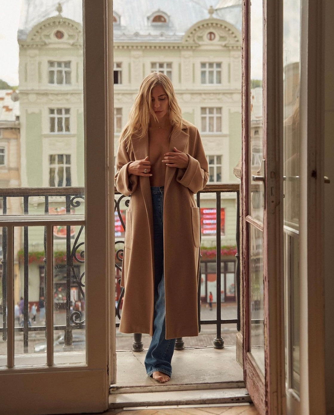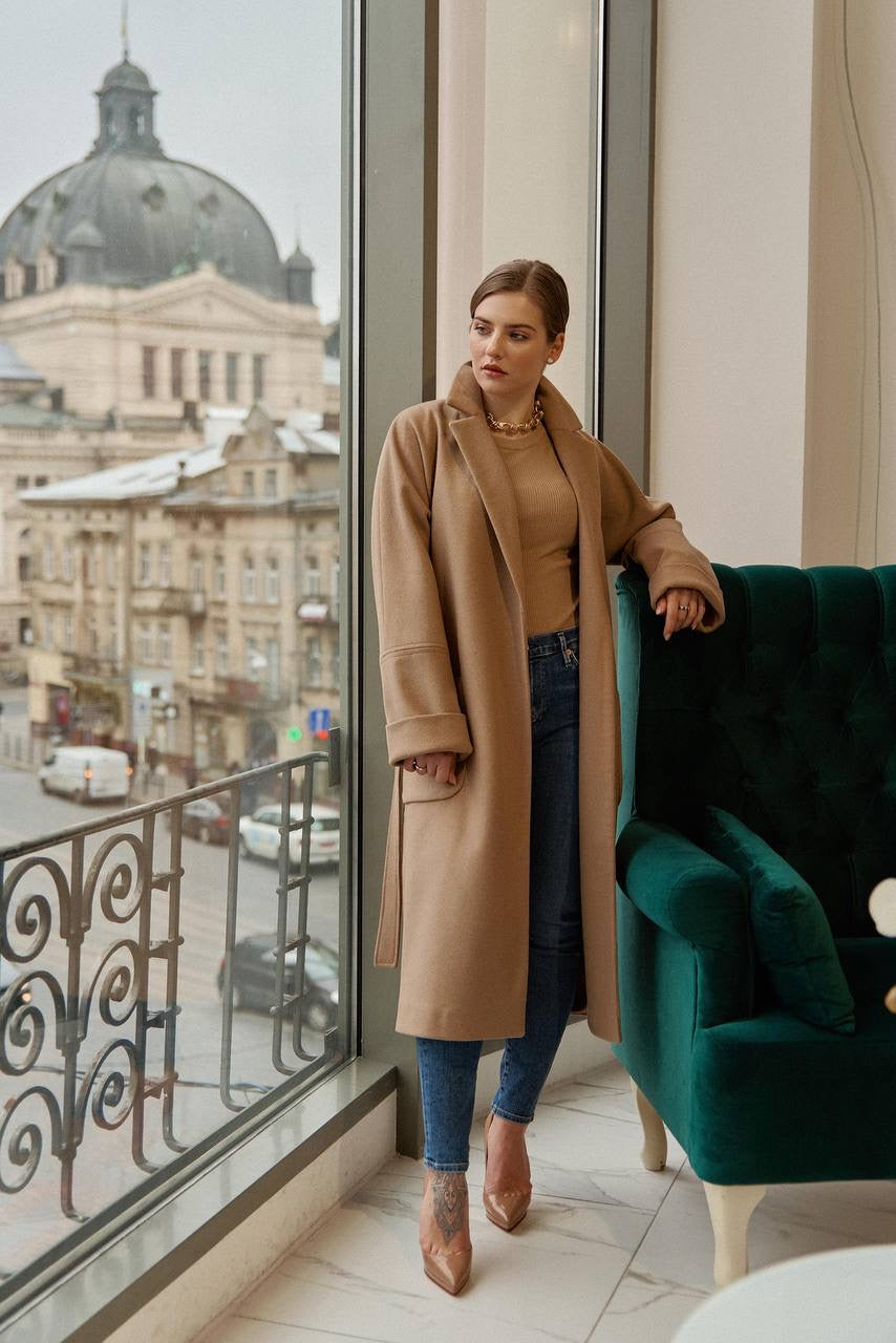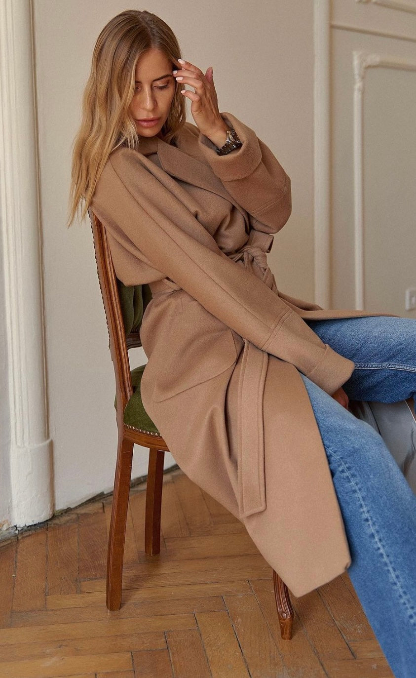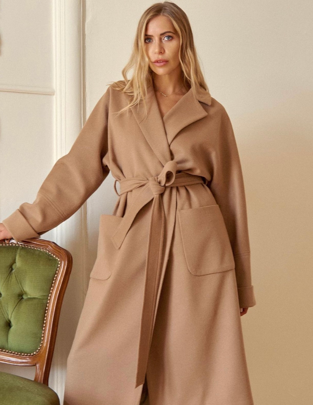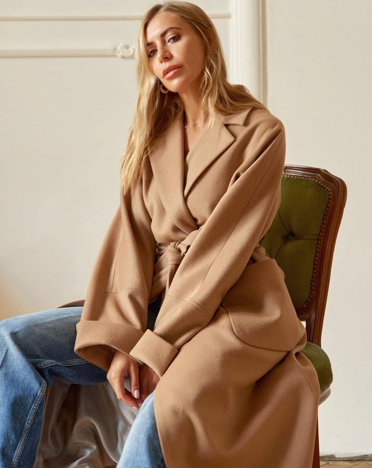 An ideal layering piece for transitional weather, this lined coat is designed with a relaxed wrap silhouette in a cozy wool-and-cashmere blend.