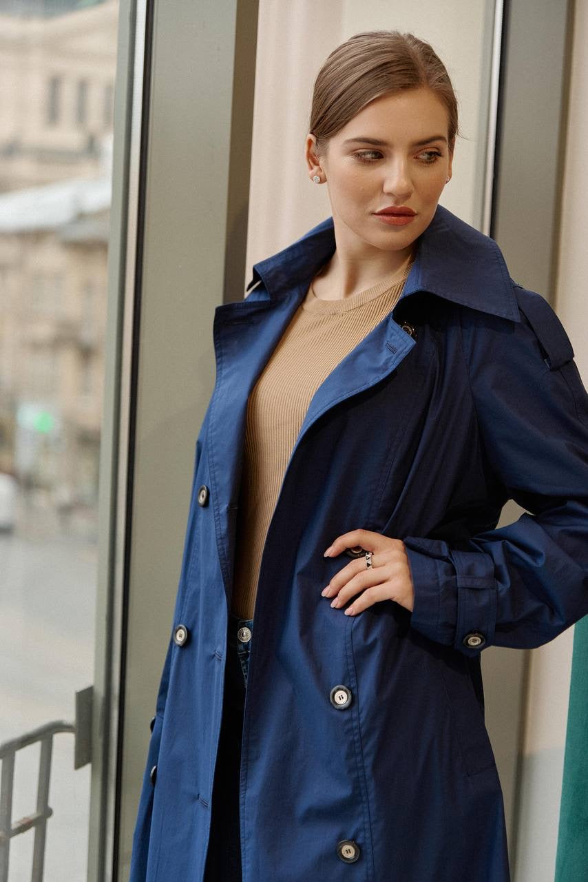 Navy Belted Cotton Trench Coat